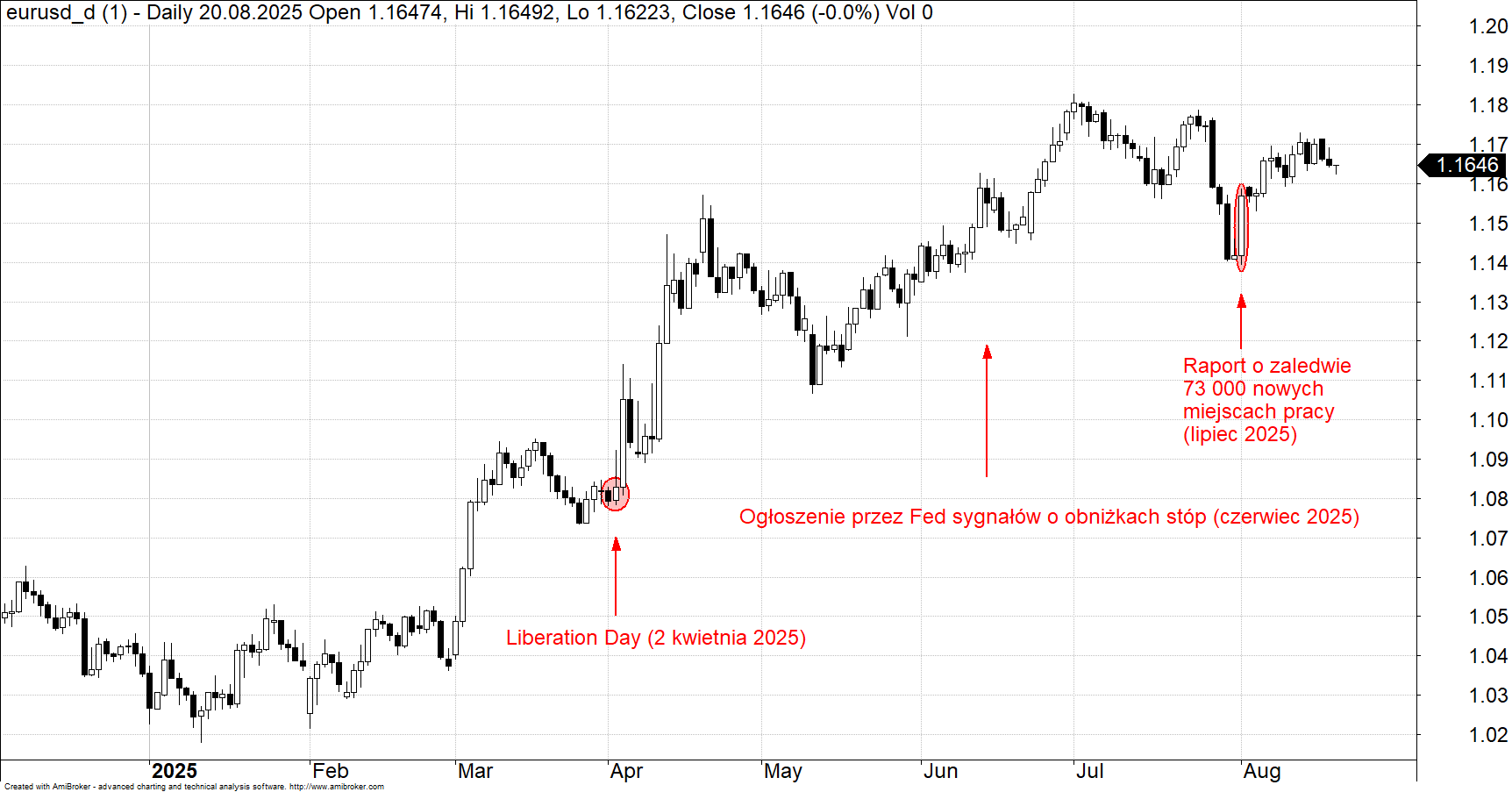 Jeszcze wiosną presja na dolara wynikała głównie z polityki handlowej. Ogłoszony przez Trumpa 2 kwietnia „Liberation Day” z pakietem nowych taryf wywołał panikę inwestorów na całym świecie i falę ucieczki z amerykańskich aktywów. Wkrótce potem Biały Dom, starając się uspokoić rynki, podpisał kolejne umowy handlowe. Inflacja przestała być straszakiem, a notowania ustabilizowały się. Dolar jednak nie podniósł się już na dobre.