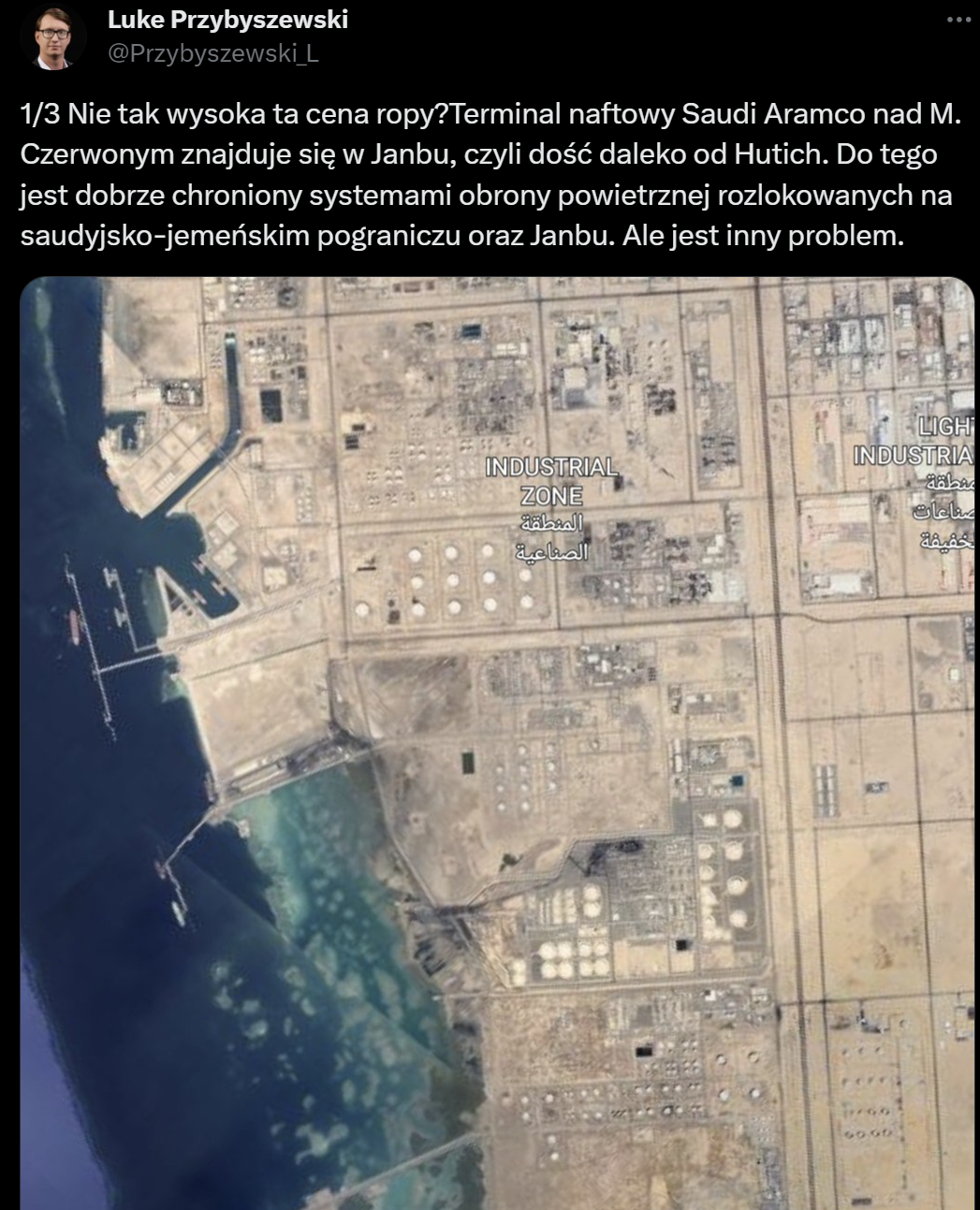 Wysoka cena ropy naftowej może wynikać z różnych czynników, w tym potencjalnych zagrożeń dla infrastruktury naftowej. W rejonie Morza Czerwonego, choć kluczowy dla światowego rynku terminal Saudi Aramco w Janbu jest dobrze zabezpieczony, istnieje ryzyko ataków, zwłaszcza na odcinki ropociągów czy mniej chronione obiekty. Systemy obrony powietrznej nie są gwarancją absolutnej ochrony, jak pokazują wcześniejsze ataki Huti na podobne obiekty. Ponadto, istnieje ryzyko ataków ze strony sił proirańskich w innych regionach, takich jak Syria czy Irak, co może wpływać na dostawy ropy naftowej.