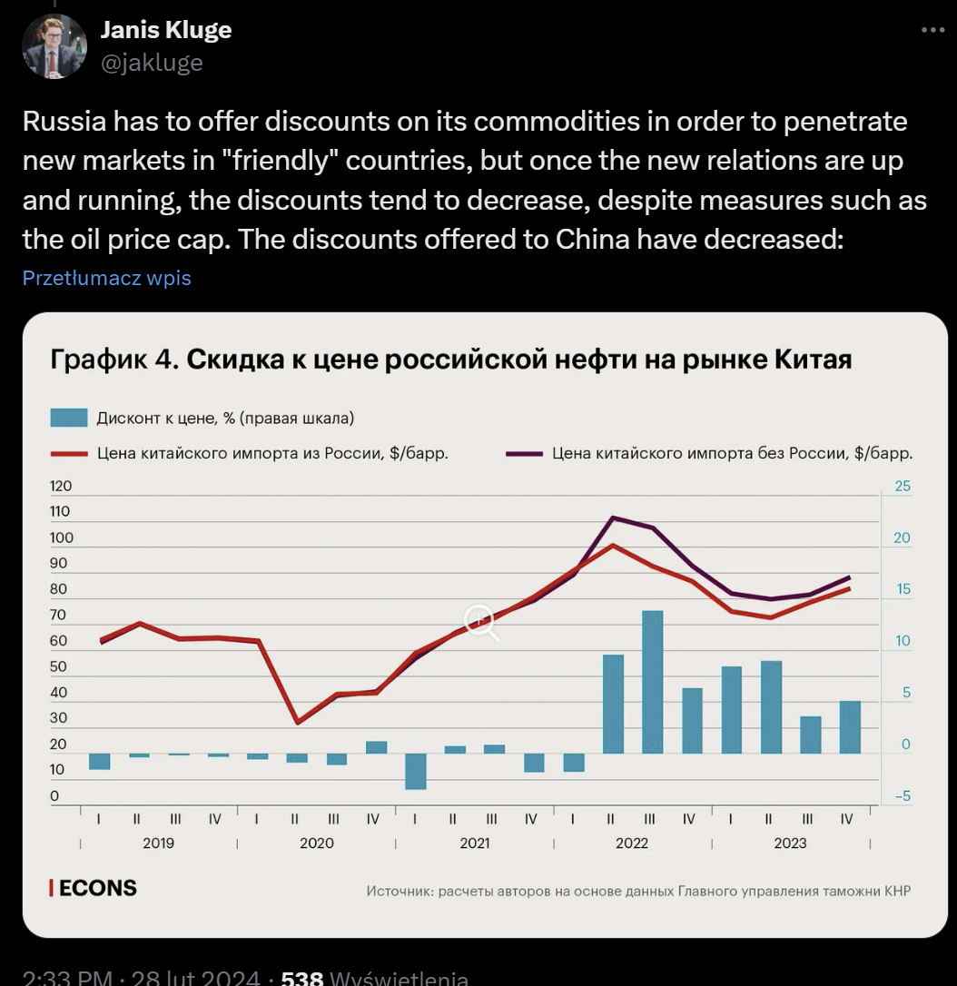 Rosja musi stosować politykę rabatową, by sprzedawać swoje surowce w krajach uważanych za przyjazne. Dopiero wraz z rozwojem takiej współpracy Kreml próbuje rewidować ceny.