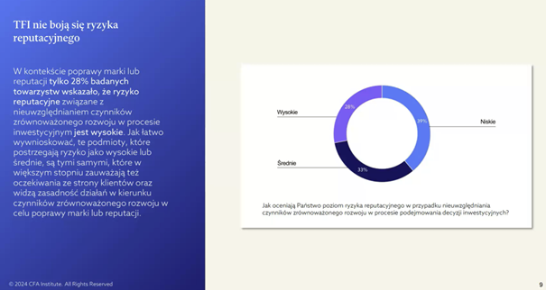 Tylko 26 proc. TFI dostrzega wysokie ryzyko reputacyjne związane z nieuwzględnianiem czynników ESG w swoich strategiach inwestycyjnych.