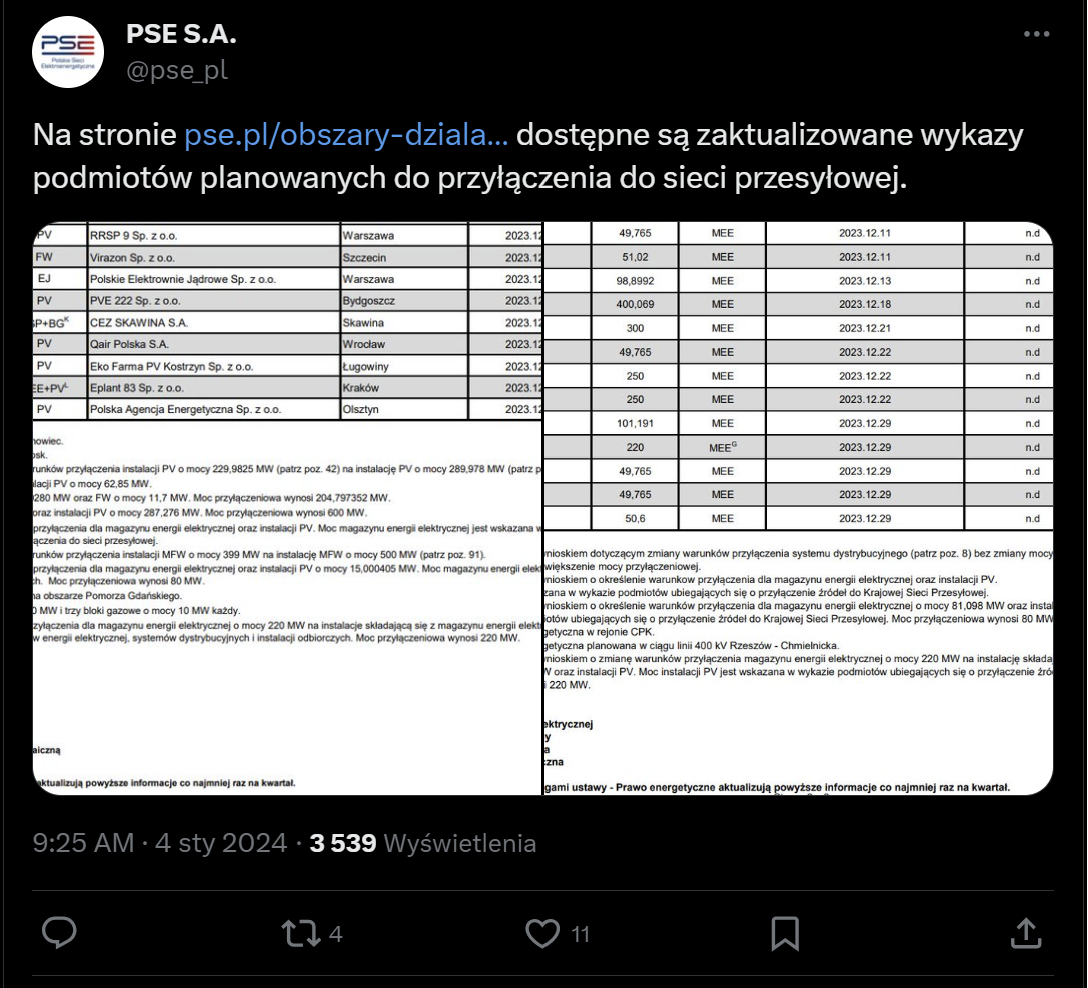 Z informacji państwowego operatora PSE wynika, że wydano warunki przyłączenia do sieci dla planowanej pierwszej w Polsce elektrowni jądrowej. Kolejny etap to zawarcie umowy przyłączeniowej między PSE a Polskimi Elektrowniami Jądrowymi, które koordynują inwestycję w atom.