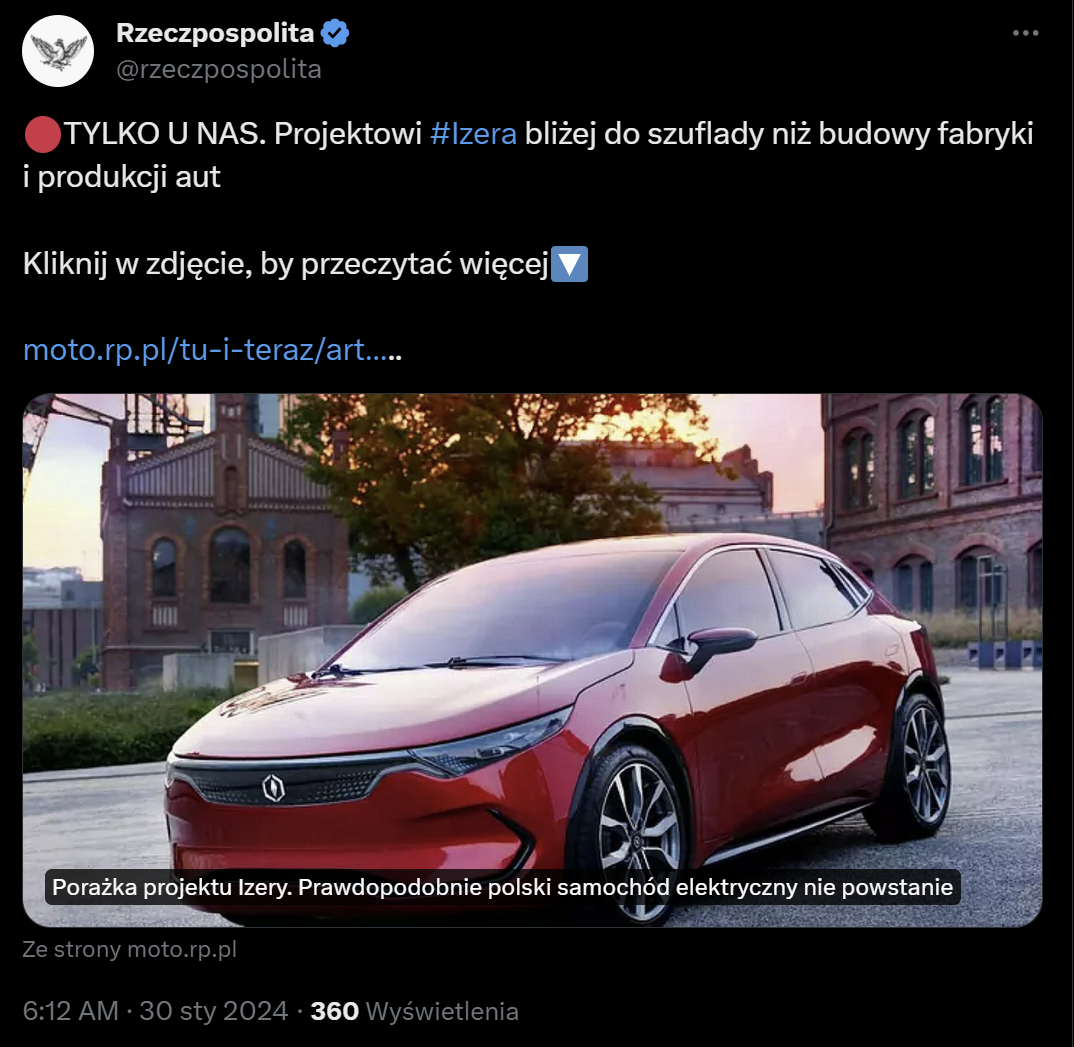 Ważą się losy Izery – polskiego samochodu elektrycznego. Projekt budowy fabryki w Jaworznie czeka audyt, po którym zapadnie decyzja, czy kontynuować czy skasować przedsięwzięcie.