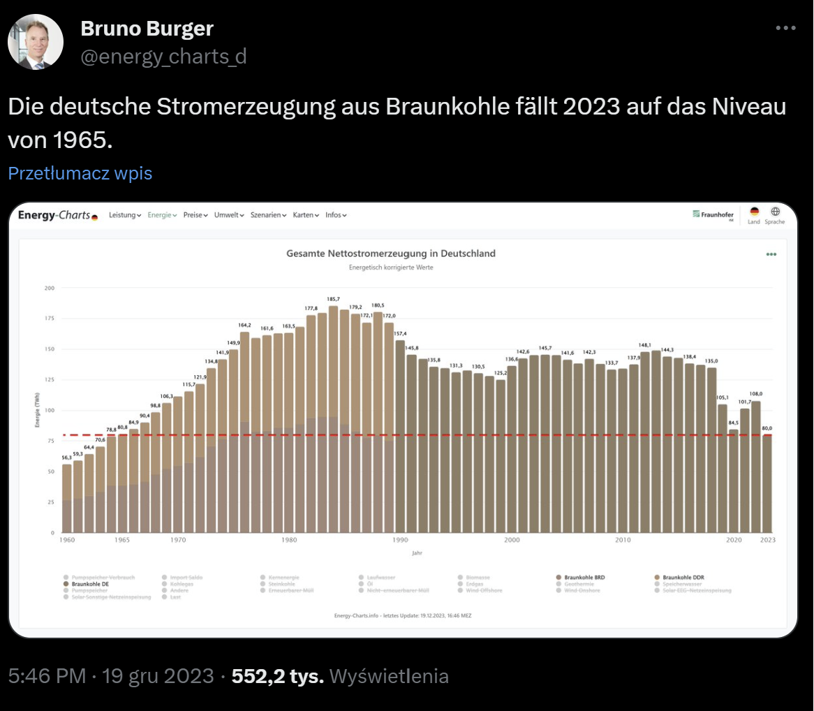 Węgiel brunatny był i nadal jest jednym z filarów niemieckiej energetyki. Największa kopalnia to „Hambach” należąca do koncernu RWE. Zakończenie wydobycia jest w niej planowane na 2029/2030 r.