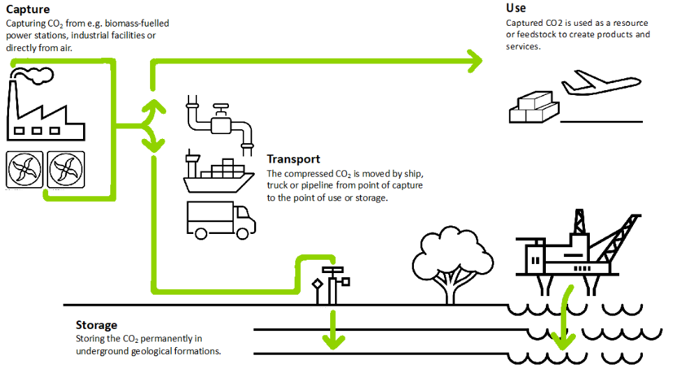 W tym celu, na poziomie UE, tworzona jest obecnie „Strategia przemysłowego zarządzania emisjami dwutlenku węgla”, której celem nadrzędnym jest „stworzenie rynku łańcuchów wartości CCS, CCU i usuwania dwutlenku węgla obejmujący europejskich dostawców technologii”. Rynek ten pozwoli na rozwiązanie problemu wolnego tempa rozwoju infrastruktury przez podmioty, które mierzą się obecnie z wysokimi kosztami rozpoznania, przygotowania i oceny planowanych projektów inwestycyjnych.