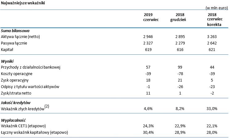 Pierwsza połowa tego roku była dla Haitong Bank dobra również pod względem utrzymania wysokiej jakości aktywów. Wskaźnik kredytów zagrożonych (NPL) spadł z 8,2 proc. w grudniu 2018 r. do 4,6 proc. w czerwcu 2019 r. Wynik ten był częściowo wsparty sprzedażą irlandzkiej spółki zależnej, która już od grudnia 2018 r. wykazywana była w bilansie jako działalność zaniechana.