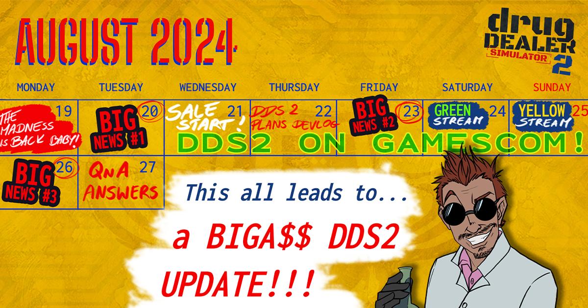 Movie Games S.A. rozpoczęło DDS Madness 2.0 - event poświęcony serii Drug Dealer Simulator, związany z obecnością gry na targach Gamescom w Kolonii, a także nadchodzącymi zapowiedziami ważnych aktualizacji obu gier w serii.