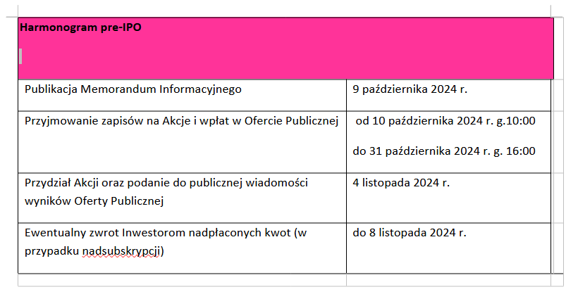 Harmonogram oferty publicznej MediSensonic