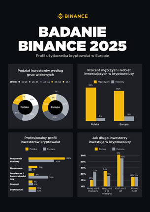 - Europejska społeczność krypto nie tylko rośnie – ona dojrzewa – komentuje Łukasz Pierwienis, Dyrektor Generalny Binance Poland. - Widzimy różnorodną i rosnącą bazę użytkowników: od pionierów, którzy rozwijali się razem z rynkiem, po profesjonalistów i nowicjuszy, którzy podchodzą do kryptowalut z rozwagą i konkretnym celem. Ta ewolucja wyraźnie pokazuje, dokąd zmierza ten sektor. W miarę jak w Europie rozwijają się regulacje i infrastruktura, kryptowaluty udowadniają, że nie są chwilową modą – to długoterminowy ruch napędzany przez zaangażowaną społeczność gotową na kolejne etapy rozwoju rynku – podkreśla Pierwienis.