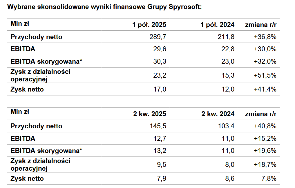 Wzrost kluczowych wskaźników finansowych. Grupa Spyrosoft opublikowała wyniki finansowe za 1 półrocze 2025 r