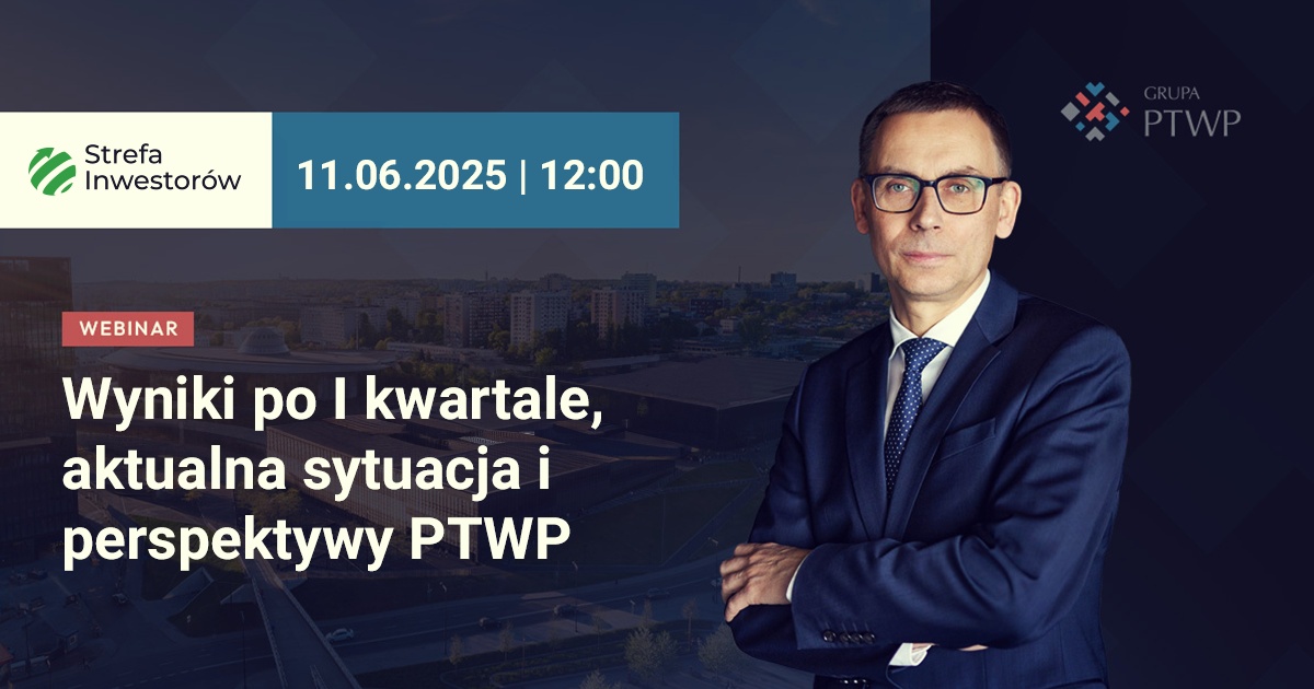 W środę, 11 czerwca 2025 r. o godz. 12:00 odbędzie się webinar, w którym udział weźmie prezes zarządu PTPW S.A. Wojciech Kuśpik. Podczas spotkania zostaną omówione wyniki za I kwartał 2025 r., aktualna sytuacja oraz perspektywy rozwoju Grupy PTWP. Inwestorzy będą mogli zadawać pytania podczas wydarzenia.