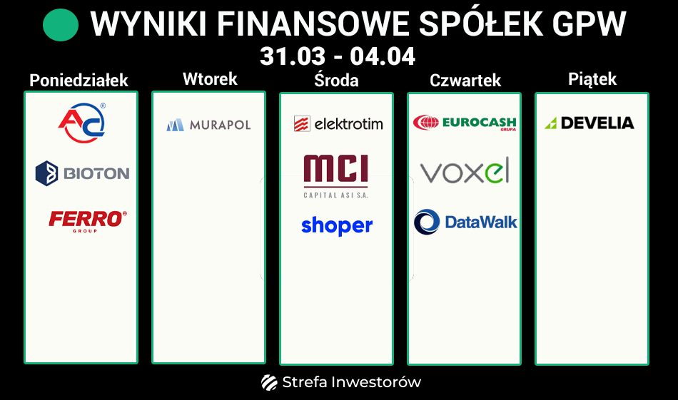 Czwartek to kluczowy dzień tygodnia pod względem raportów ze strony spółek z mWIG40. Wyniki za 2024 rok zaprezentują Eurocash #EUR oraz Voxel #VOX (diagnostyka medyczna). Oprócz nich raport roczny przedstawi także DataWalk #DAT z sWIG80 (analityka danych).